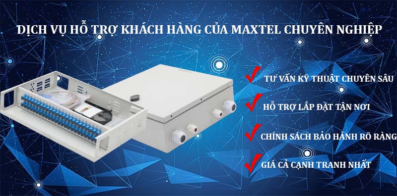 - Tư vấn kỹ thuật chuyên sâu: Đội ngũ kỹ thuật viên của Maxtel luôn sẵn sàng hỗ trợ, tư vấn giúp khách hàng lựa chọn hộp phối quang ODF phù hợp với từng mô hình hệ thống mạng. Maxtel cung cấp thông tin chi tiết về từng sản phẩm, giúp doanh nghiệp tối ưu chi phí đầu tư mà vẫn đảm bảo hiệu suất hoạt động.