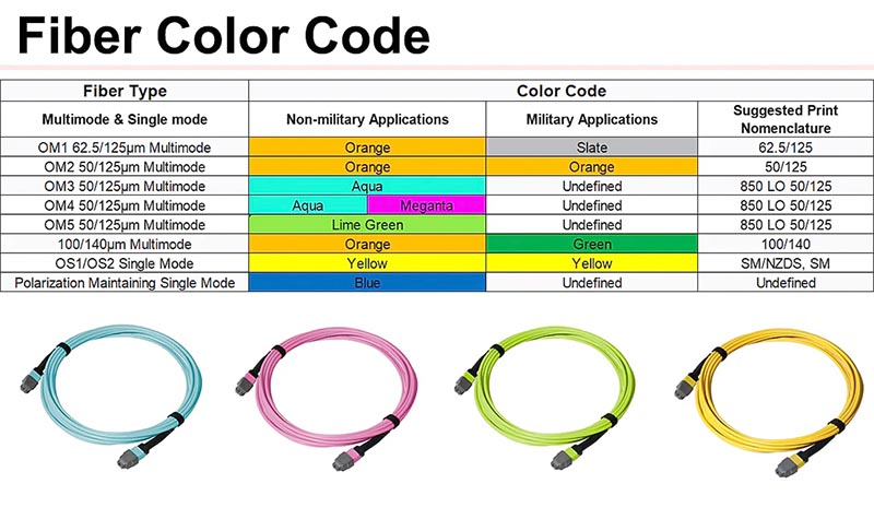 Màu sắc của dây Multimode giúp phân biệt các loại và phân nhóm theo chuẩn, dễ dàng trong việc quản lý, bảo trì hoặc nâng cấp hệ thống.